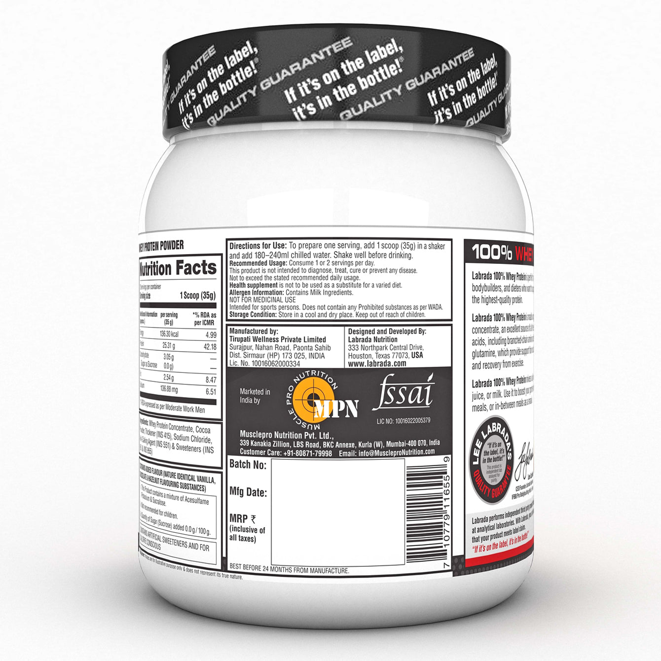 Labrada 100% Whey Protein is made using instantized whey protein concentrate, an excellent source of all these essential amino acids, including naturally occuring branched-chain amino acid (5.5g) and glutamine (4.1g) which provide support for muscle tissue and recovery from exercise.